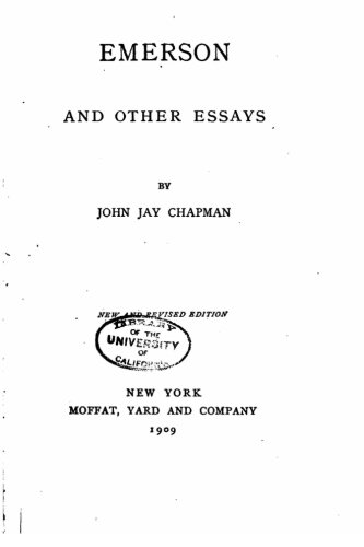 See all 2 customer reviews... Emerson, and other essays, by John Jay ChapmanEmerson, and other essays, by John Jay Chapman PDF
